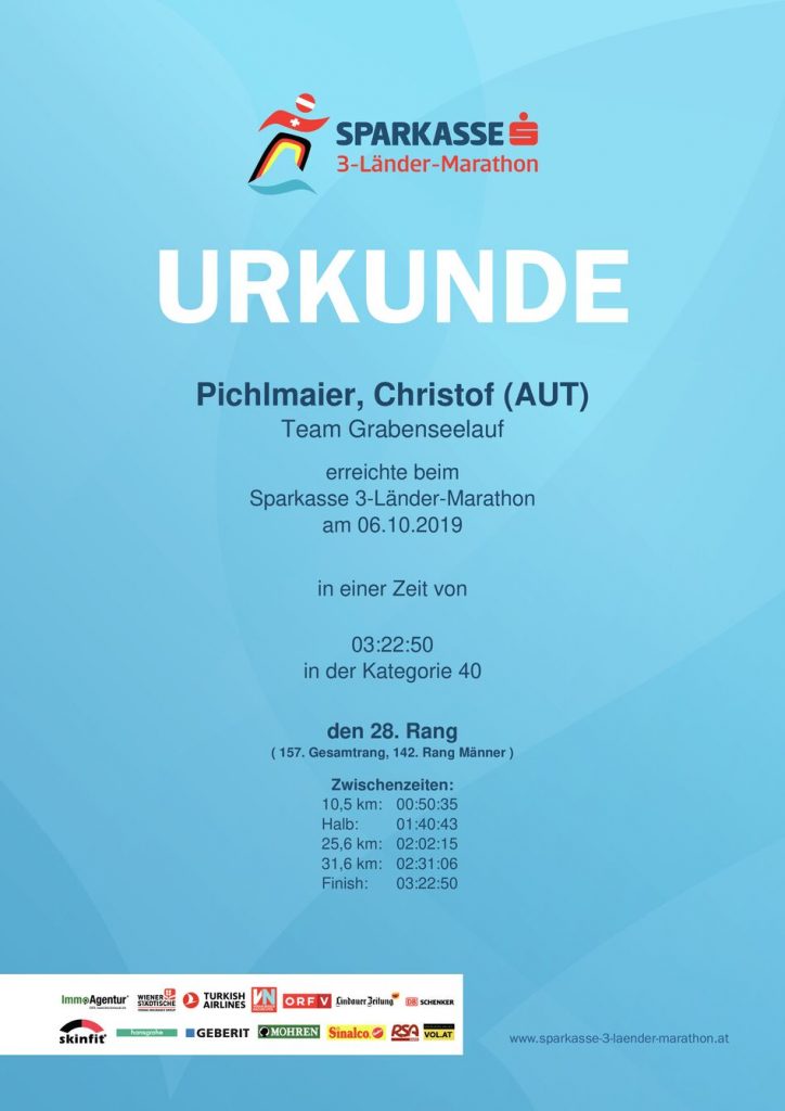 Als letzter unversehrter Teilnehmer bei den Herren vertrat uns Christof beim Marathon. Die angepeilten 3:30 h wurden spielend erreicht, wie die Urkunde belegt. Das monatelange Training hat sich somit bezahlt gemacht.