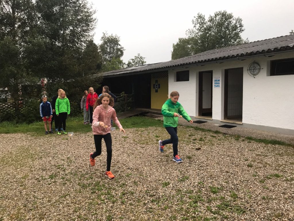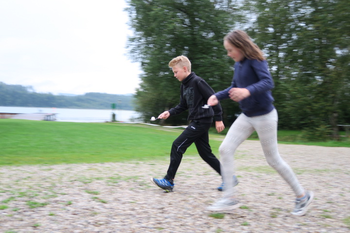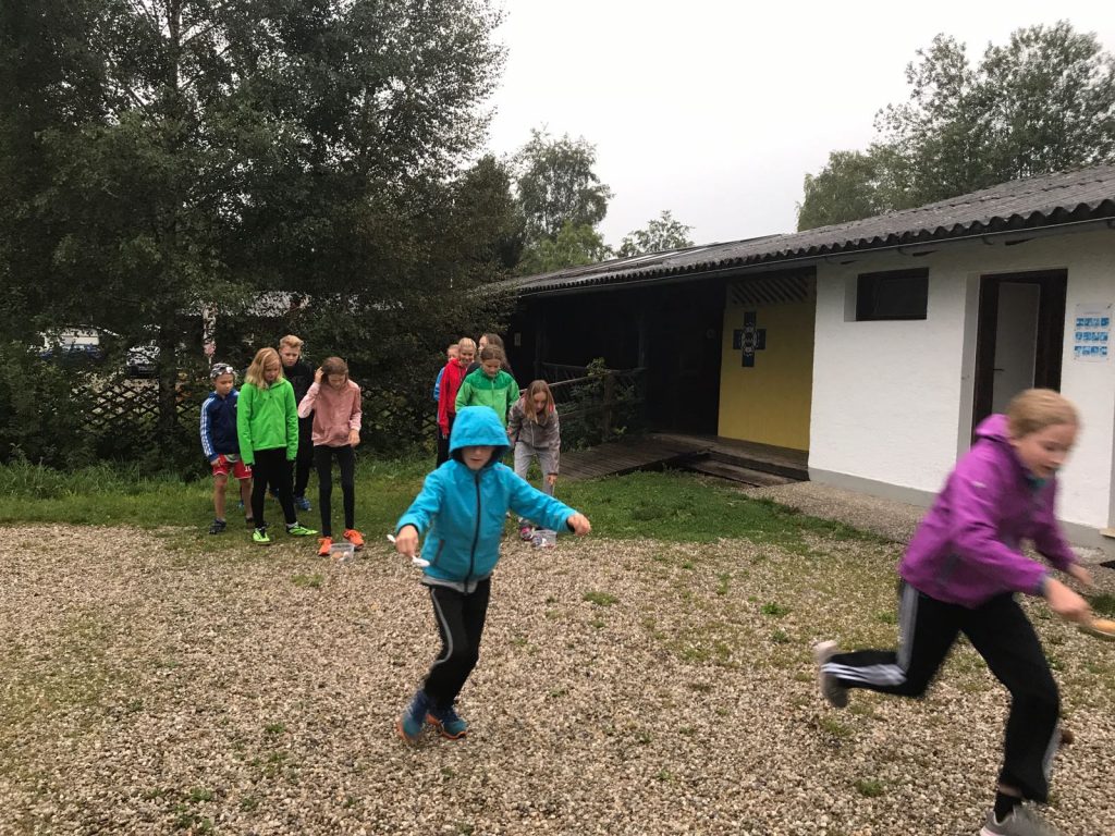 Trotz schlechtem Wetter durfte neben jeder Menge lustigen Spiele und Partymusik auch der sportliche Aspekt nicht zu kurz kommen. Bei Regen gab es einen Staffelbewerb und Fitness am Steg :-).