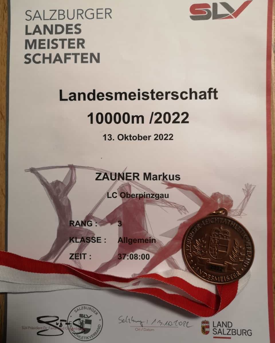 Hut ab vor Markus der einfach so bei den Salzburger Landesmeisterschaften über 10.000 m teilnimmt