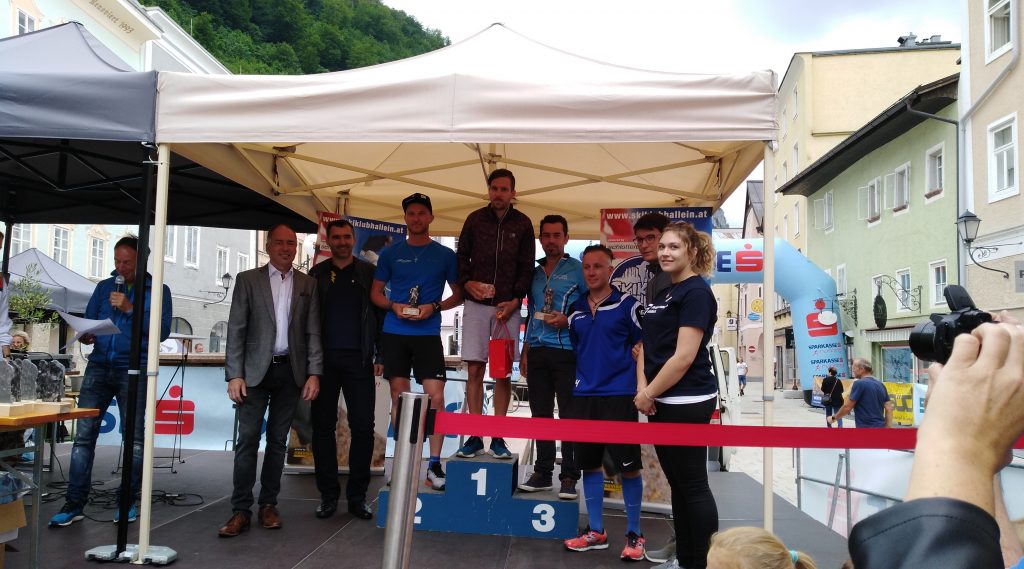 18°C, bewölkt, leichter Wind. Tolles Laufwetter für den Salzkristalllauf. Mit einer Abordnung von 5 Läufer/innen war das Team vor Ort. Während für Hans und Christian die Strecke Neuland war, starteten Franz und Helga als Veteranen ins Rennen. Norbert sah darin die Chance , als ehemaliges Mitglied des Skiklub Hallein und Eingeborener, eine alte Hausstrecke unsicher zu machen.